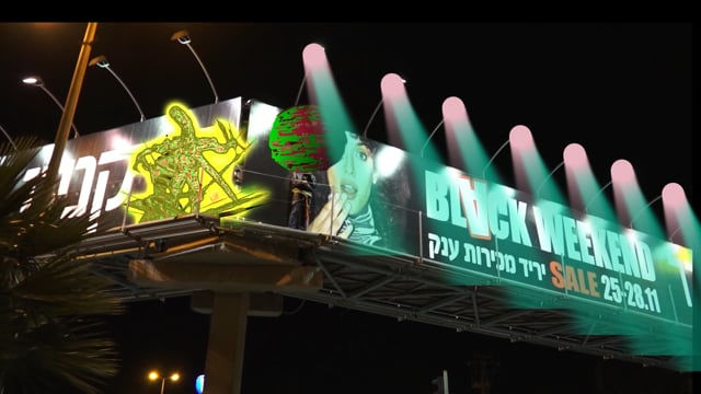 And also a public art work, in which the artist orders a billboard in Bosnia via the Internet, in which a postcard in Hebrew that he received as a child from a childhood friend was published.